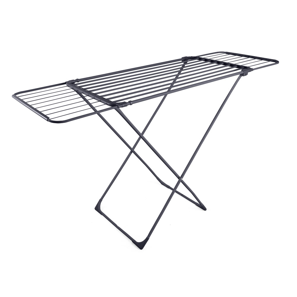 Απλώστρα ρούχων επεκτεινόμενη με ανθεκτική μεταλλική κατασκευή και μαύρη ηλεκτροστατική βαφή για προστασία από τη φθορά και την υγρασία. Διαθέτει ρυθμιζόμενο μήκος 108–176 εκ., προσφέροντας ευελιξία και επιπλέον χώρο απλώματος ανάλογα με τις ανάγκες σας. Είναι σταθερή, πρακτική και πτυσσόμενη για εύκολη αποθήκευση, συνδυάζει λειτουργικότητα και λιτό σχεδιασμό για καθημερινή χρήση.