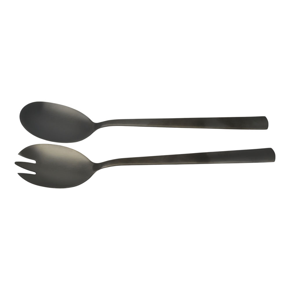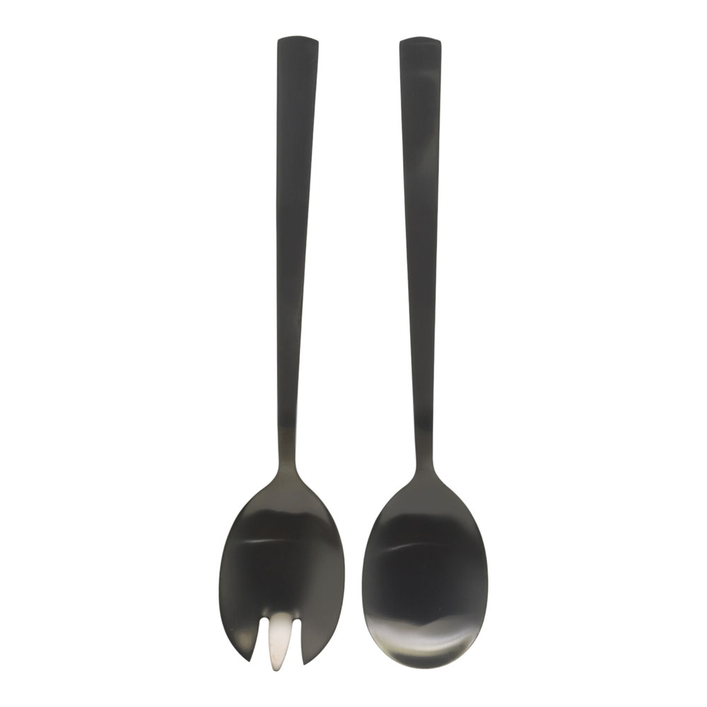 Σετ σερβιρίσματος σαλάτας από ανοξείδωτο ατσάλι (inox) σε μαύρο ματ χρώμα. Περιλαμβάνει κουτάλα και πιρούνα με μοντέρνο, λιτό σχεδιασμό που προσθέτει κομψότητα σε κάθε τραπέζι. Ανθεκτικό στη χρήση και εύκολο στον καθαρισμό.,