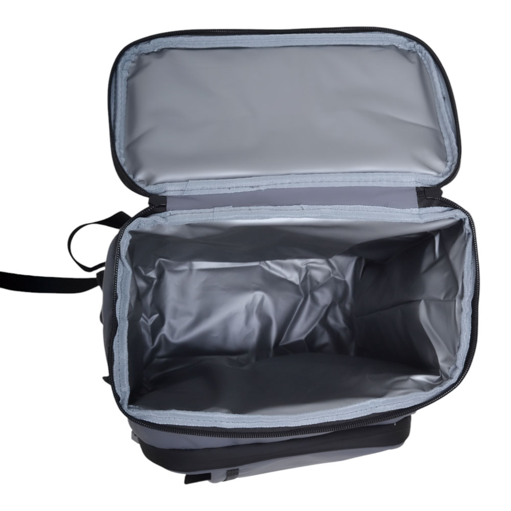 Ισοθερμική τσάντα πλάτης κατασκευασμένη από ανθεκτικό αδιάβροχο PVC, ιδανική για μεταφορά τροφίμων και ροφημάτων. Η εσωτερική επένδυση από PEVA είναι αδιάβροχη και εύκολη στο καθάρισμα, ενώ η μόνωση από PE foam πάχους 10mm βοηθά στη διατήρηση της θερμοκρασίας για περισσότερη ώρα. Διαθέτει ενισχυμένο αδιάβροχο φερμουάρ, ρυθμιζόμενους ιμάντες πλάτης για ξεκούραστη μεταφορά, μπροστινές τσέπες για εύκολη πρόσβαση και πλαϊνές θήκες με δίχτυ για επιπλέον αποθηκευτικό χώρο