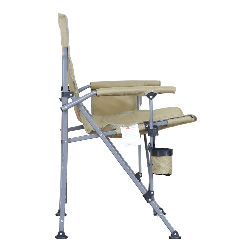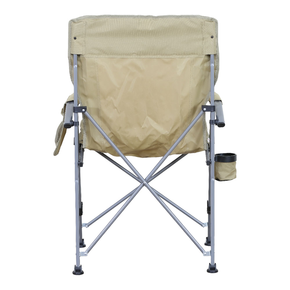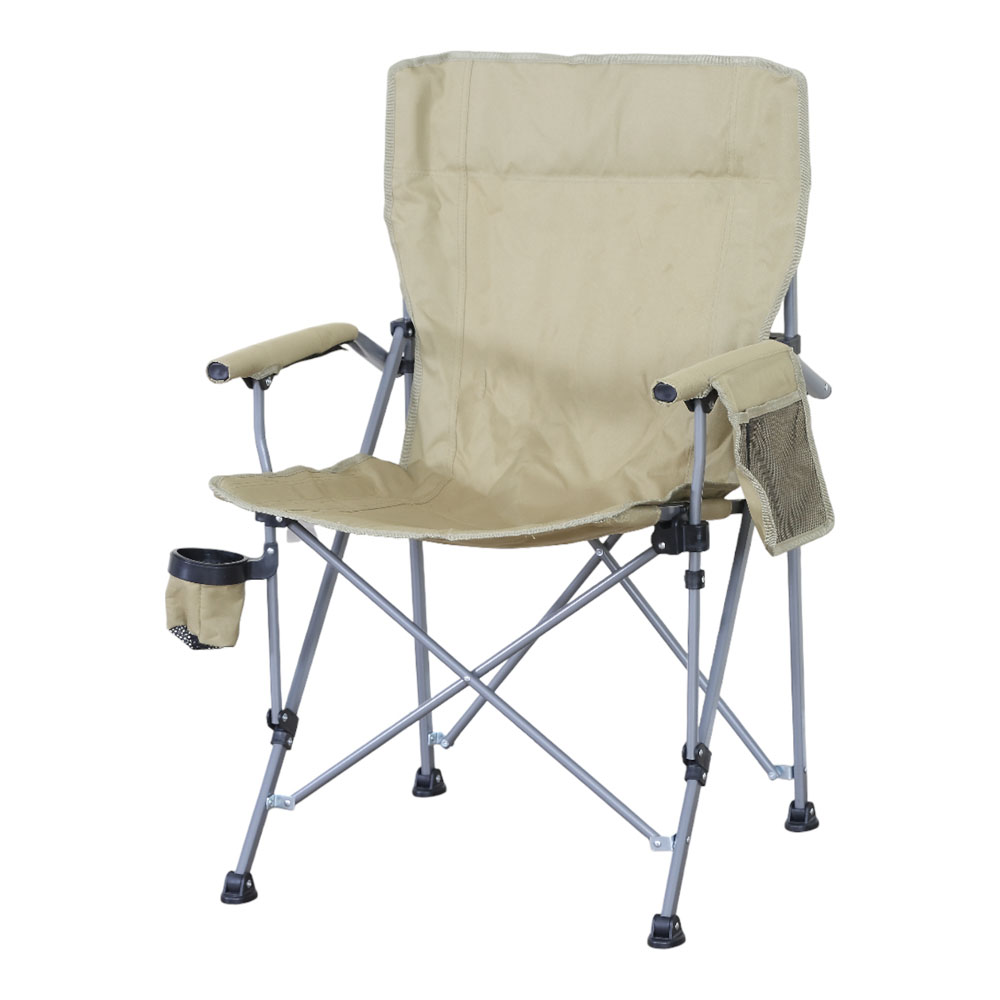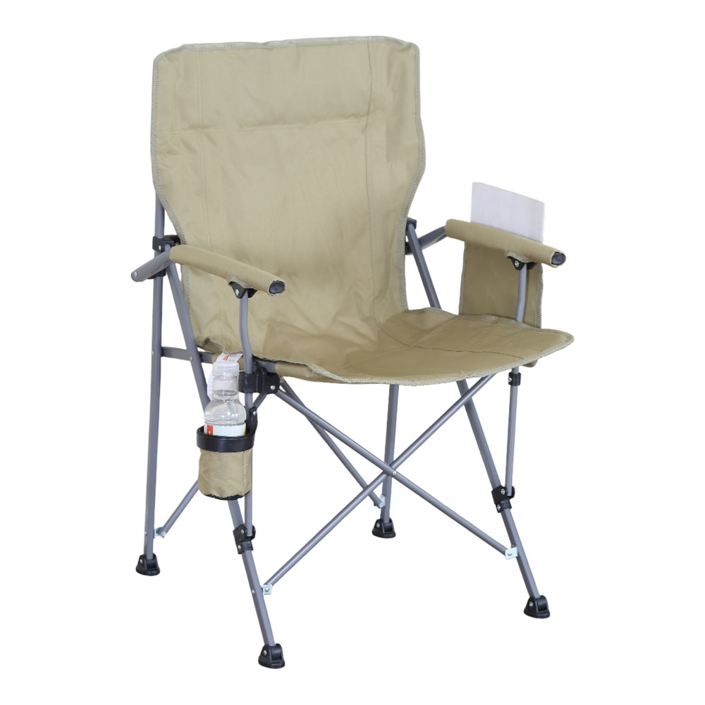 Πτυσσόμενη καρέκλα camping βαρέως τύπου με μεταλλικό σκελετό, ιδανική για κάμπινγκ, παραλία, ψάρεμα ή άλλες υπαίθριες δραστηριότητες. Ο σκελετός από μεταλλικό σωλήνα διαμέτρου 20mm και πάχους 1.0mm προσφέρει υψηλή σταθερότητα και αντοχή στη χρήση, ενώ το ύφασμα Oxford 600D εξασφαλίζει άνετο και ανθεκτικό κάθισμα. Διαθέτει πρακτική θήκη για ποτήρι και αποθηκευτική τσέπη για μικροαντικείμενα. Η πτυσσόμενη κατασκευή της επιτρέπει εύκολη μεταφορά και αποθήκευση. Συνοδεύεται από πολυεστερική τσάντα. μεταφοράς.