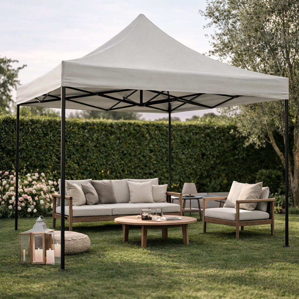 Πτυσσόμενο κιόσκι με μεταλλικό σκελετό και αδιάβροχο πολυεστερικό ύφασμα 420D, ιδανικό για σκίαση σε κήπο, βεράντα ή υπαίθριες δραστηριότητες. Ο ανθεκτικός σκελετός προσφέρει σταθερότητα, ενώ το αδιάβροχο ύφασμα προστατεύει αποτελεσματικά από τον ήλιο και την ελαφριά βροχή. Διαθέτει 3 διαφορετικές επιλογές ρύθμισης ύψους με κλείδωμα ασφαλείας (185/193/210εκ.), ώστε να προσαρμόζεται στις ανάγκες σας. Η συνολική διάσταση του κιόσκι είναι 3x3μ. με μέγιστο ύψος 3,20