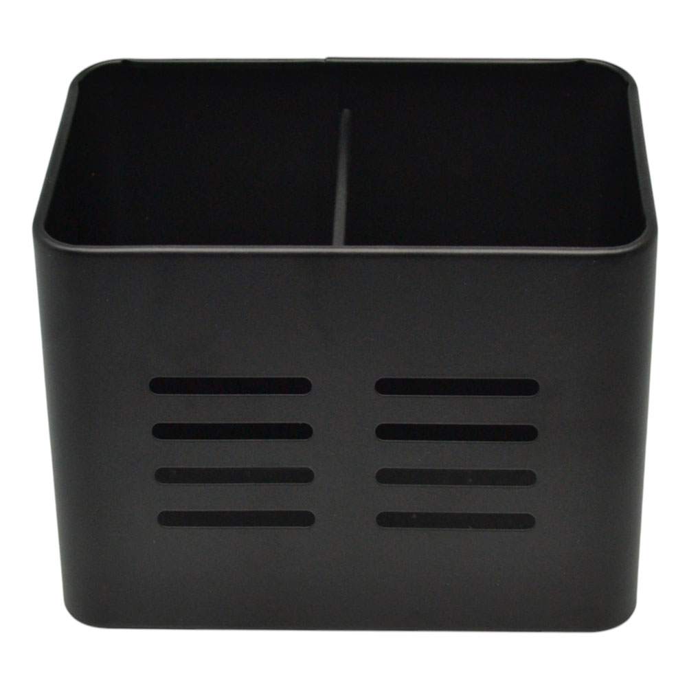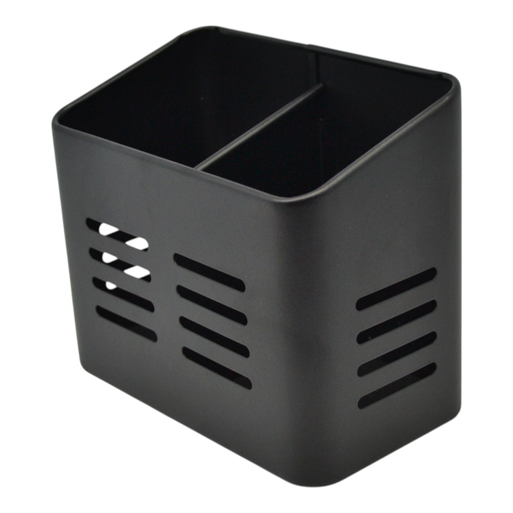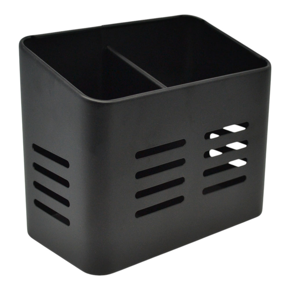 Μεταλλική κουταλοθήκη σε μαύρο χρώμα με ματ φινίρισμα, η οποία διαθέτει δύο χωρίσματα για καλύτερη οργάνωση μαχαιροπίρουνων ή εργαλείων κουζίνας. Ιδανική για τοποθέτηση σε πάγκο ή μέσα σε ντουλάπι, συνδυάζει πρακτικότητα με κομψό και μοντέρνο σχεδιασμό.