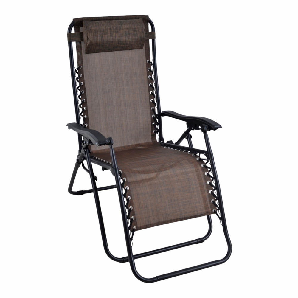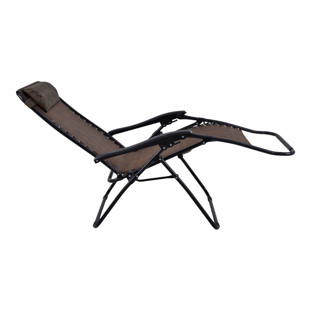 Ξαπλώστρα μεταλλική με μαύρο σκελετό,ύφασμα textilene σε καφέ χρώμα και προσκέφαλο το οποίο ρυθμίζεται. Διαθέτει πολλές επιλογές ρύθμισης θέσης επιτρέποντάς σας να κάθεστε ή να ξαπλώνετε και είναι πτυσσόμενη για εύκολη μεταφορά και αποθήκευση.