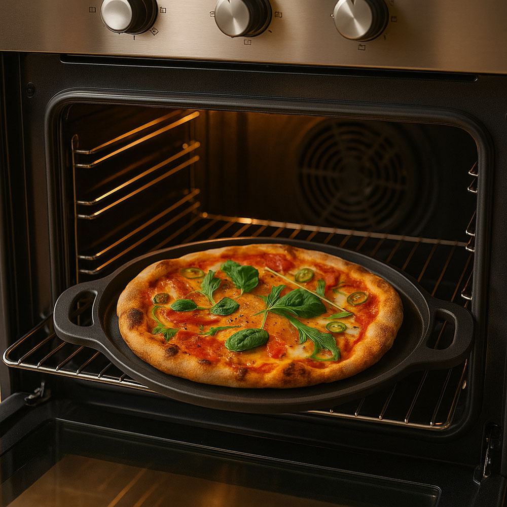 Σκεύος από μαντέμι με 100% φυσική επίστρωση (seasoned) με φυτικό λάδι κ έτοιμο για χρήση.Κατάλληλο για χρήση σε όλες τις εστίες,τις ψησταριές μπάρμπεκιου κ τους φούρνους.Παρέχει εξαιρετική κατανομή κ διατήρηση θερμότητας για ένα ομοιόμορφο μαγείρεμα