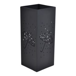 Ομπρελοθήκη μεταλλική στρογγυλή, με μεταλλικό πάτο σε χάλκινο αντικέ χρώμα και διακριτική διάτρητη διακόσμηση.