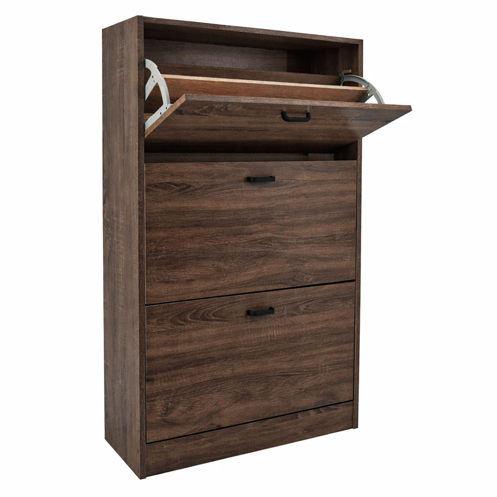 Παπουτσοθήκη Τριπλή Ξύλινη Με Πλάτη Σε Καρυδί Χρώμα 63X24X115 Εκ. Ankor