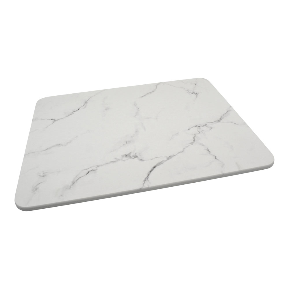 Πατάκι από διατομίτη σε άσπρο χρώμα, με σχέδιο εφέ μάρμαρο, το οποίο απορροφά γρήγορα την υγρασία, στεγνώνει άμεσα και είναι αντιολισθητικό. Ιδανικό για το μπάνιο ή την κουζίνα είναι εύκολο στο καθάρισμα και ανθεκτικό στη χρήση.