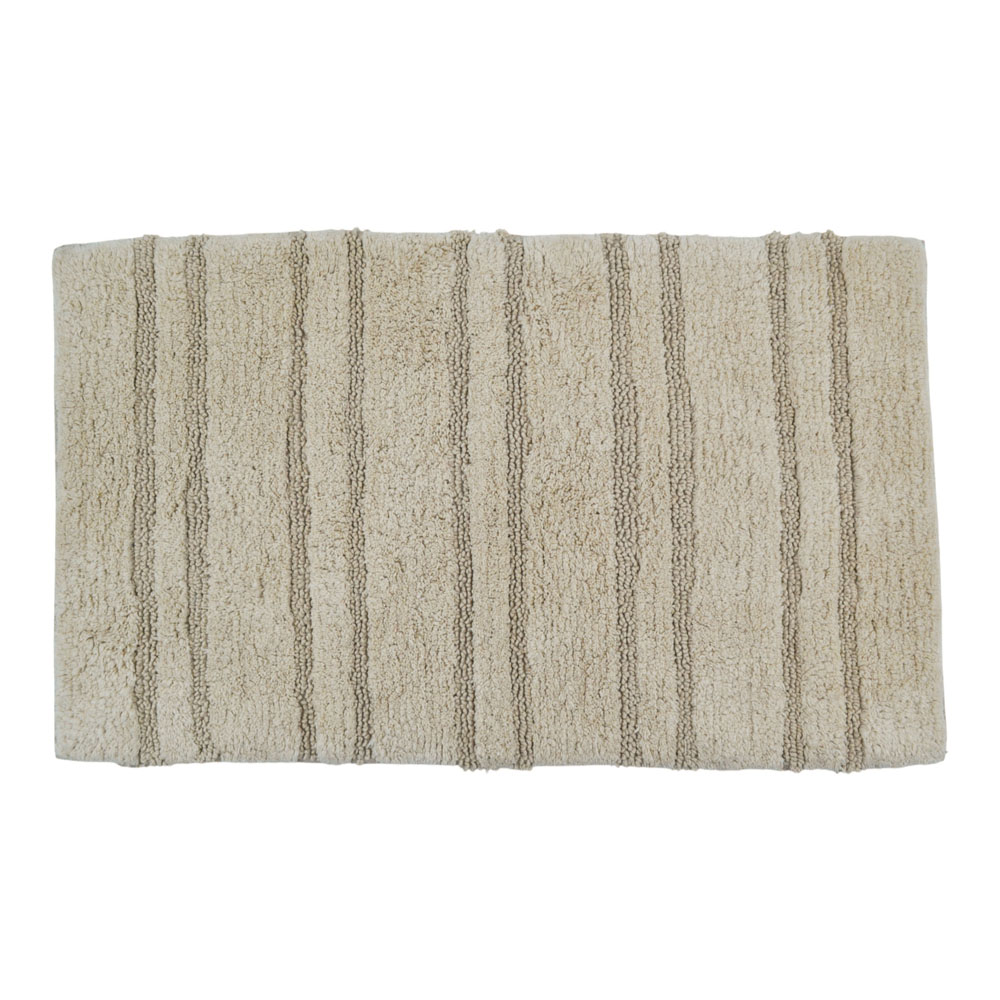 Βαμβακερό πατάκι με ανάγλυφη ριγέ ύφανση, σχεδιασμένο για άνεση και ασφάλεια στον χώρο του μπάνιου. Κατασκευασμένο από 100% βαμβάκι υψηλής ποιότητας με πυκνότητα 2000 gsm, προσφέρει εξαιρετική απορροφητικότητα και απαλή αίσθηση στο πάτημα. Η αντιολισθητική επίστρωση hotmelt στην κάτω πλευρά εξασφαλίζει σταθερότητα και μειώνει τον κίνδυνο ολίσθησης. Κατάλληλο για πλύσιμο, διατηρεί τη μορφή και την ποιότητά του με την πάροδο του χρόνου.
