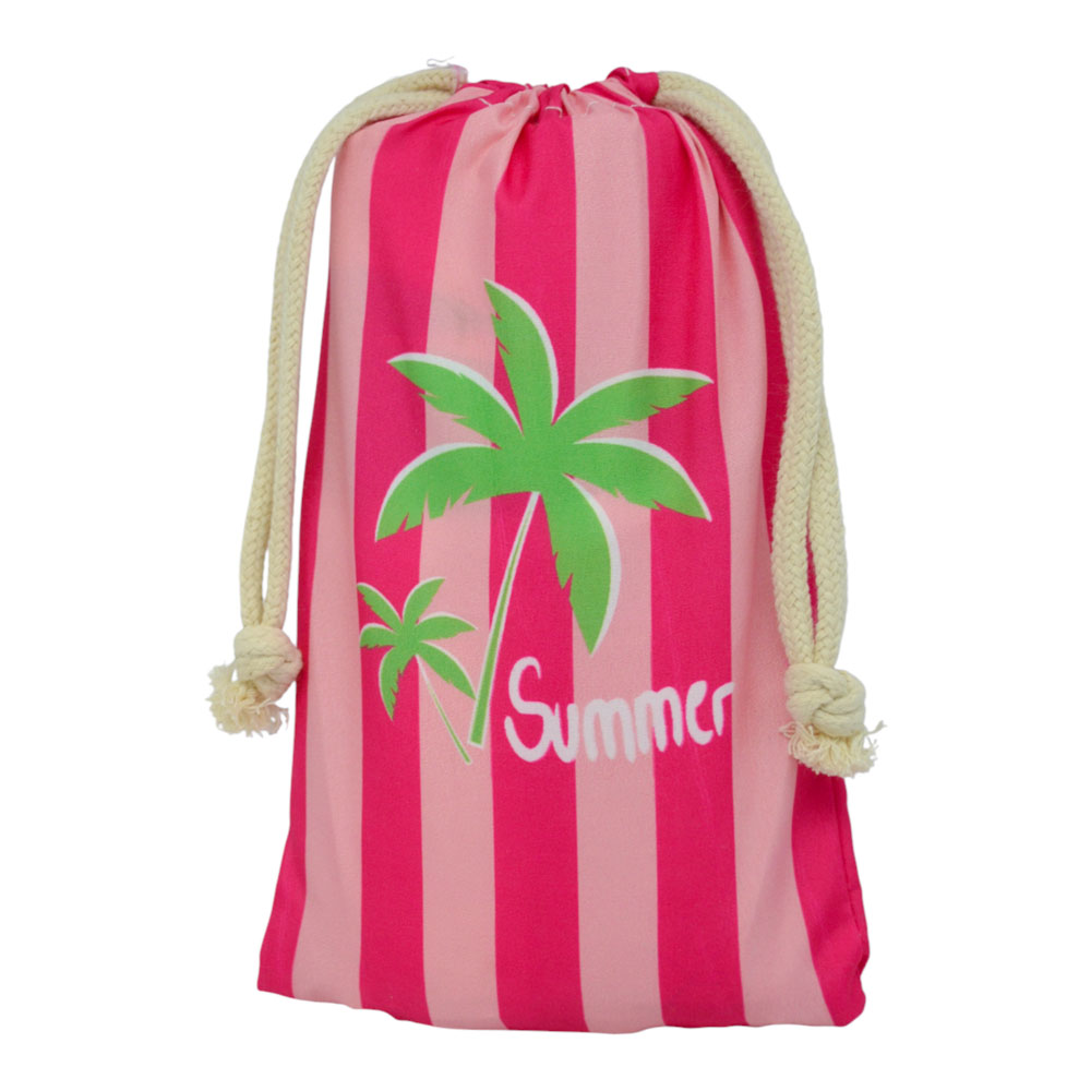 Πετσέτα Microfiber 200Gsm Με Θήκη Και Σχέδιο Κόκκινο Ροζ Ριγέ 80X160Εκ. Ankor