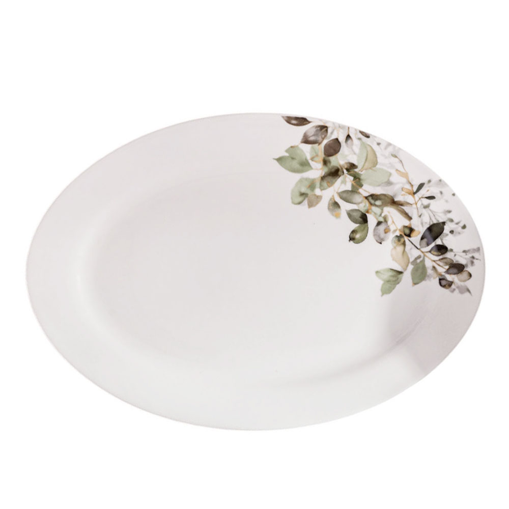Πιατέλα από πορσελάνη υψηλής ποιότητας, διαμέτρου 35,5 εκ., ιδανική για καθημερινό σερβίρισμα. Το διακριτικό της σχέδιο με κομψό floral μοτίβο σε φυσικές πράσινες και γήινες αποχρώσεις χαρίζει φρέσκια και διακριτική αισθητική στο τραπέζι. Κατασκευασμένη από ανθεκτική πορσελάνη για μεγάλη διάρκεια ζωής και ευκολία στο καθάρισμα. Κατάλληλη για χρήση στο πλυντήριο πιάτων και στον φούρνο μικροκυμάτων.
