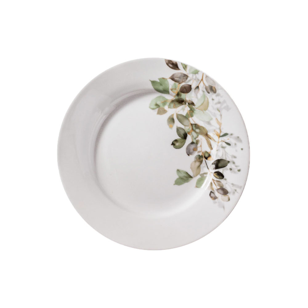 Πιάτο φρούτου από πορσελάνη υψηλής ποιότητας, διαμέτρου 19 εκ., ιδανικό για καθημερινό σερβίρισμα. Το διακριτικό του σχέδιο με κομψό floral μοτίβο σε φυσικές πράσινες και γήινες αποχρώσεις χαρίζει φρέσκια και διακριτική αισθητική στο τραπέζι. Κατασκευασμένο από ανθεκτική πορσελάνη για μεγάλη διάρκεια ζωής και ευκολία στο καθάρισμα. Κατάλληλο για χρήση στο πλυντήριο πιάτων και στον φούρνο μικροκυμάτων.