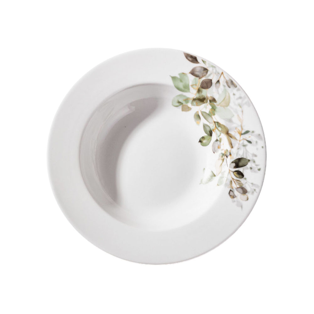 Πιάτο βαθύ από πορσελάνη υψηλής ποιότητας, διαμέτρου 21,5 εκ., ιδανικό για καθημερινό σερβίρισμα. Το διακριτικό του σχέδιο με κομψό floral μοτίβο σε φυσικές πράσινες και γήινες αποχρώσεις χαρίζει φρέσκια και διακριτική αισθητική στο τραπέζι. Κατασκευασμένο από ανθεκτική πορσελάνη για μεγάλη διάρκεια ζωής και ευκολία στο καθάρισμα. Κατάλληλο για χρήση στο πλυντήριο πιάτων και στον φούρνο μικροκυμάτων.