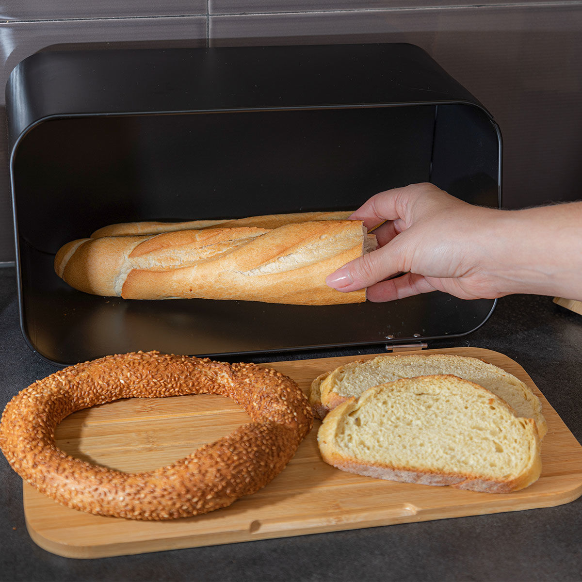 Η ψωμιέρα της εταιρείας Estia, θα σας βοηθήσει να αποθηκεύετε το ψωμί σας και να το διατηρείτε φρέσκο για περισσότερο καιρό. Διαθέτει καπάκι ώστε να κλείνει και να εμποδίζει την άμεση επαφή του ψωμιού με τον αέρα, επιμηκύνοντας έτσι τη ζωή του, αφού το ψωμί όταν έρχεται σε επαφή με τον αέρα έχει την τάση να χαλάει πιο γρήγορα. Επίσης θα το προστατέψει από έντομα και άλλους εξωγενείς παράγοντες, ενώ παράλληλα θα συμβάλλει στο να παραμείνει η κουζίνα σας καθαρή και απαλλαγμένη από ψίχουλα.