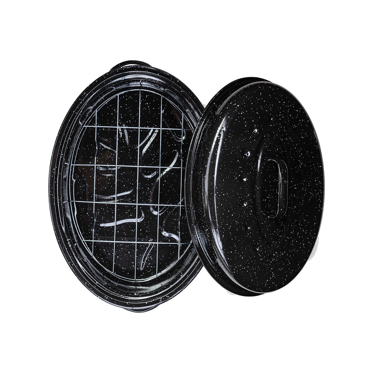 Γάστρα φούρνου οβάλ εμαγιέ με καπάκι και σχάρα, άριστης ποιότητας, ιδανική για χρήση σε υψηλές θερμοκρασίες.