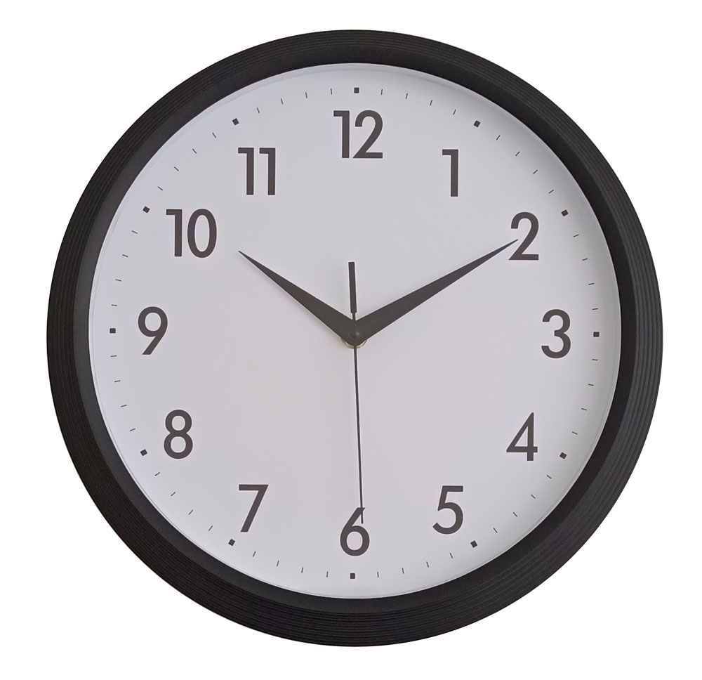 Ρολόι τοίχου με πλαστικό πλαίσιο σε μαύρο χρώμα και λευκό καντράν με μαύρους αριθμούς. Ο μίνιμαλ σχεδιασμός του προσφέρει καθαρή και ευδιάκριτη ένδειξη της ώρας, ενώ ο αθόρυβος μηχανισμός εξασφαλίζει απόλυτη ησυχία.Ιδανικό για γραφείο, κουζίνα ή καθιστικό