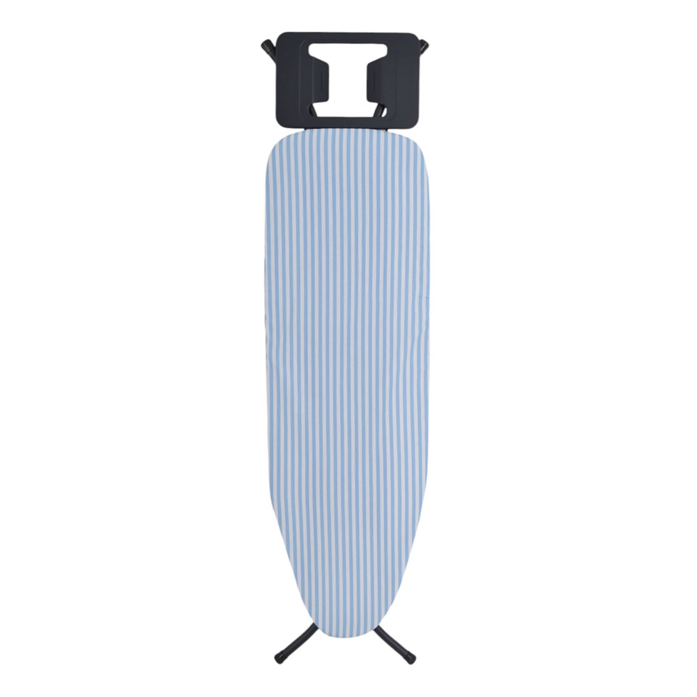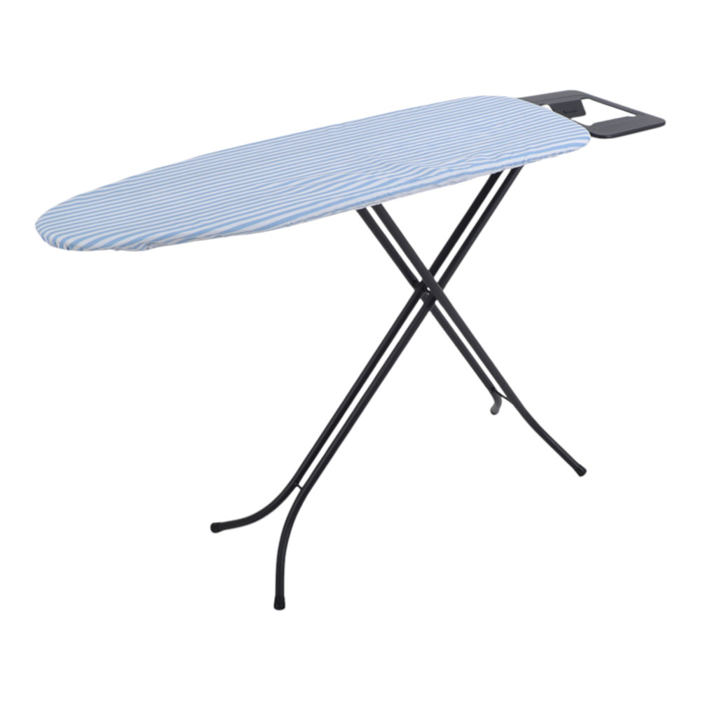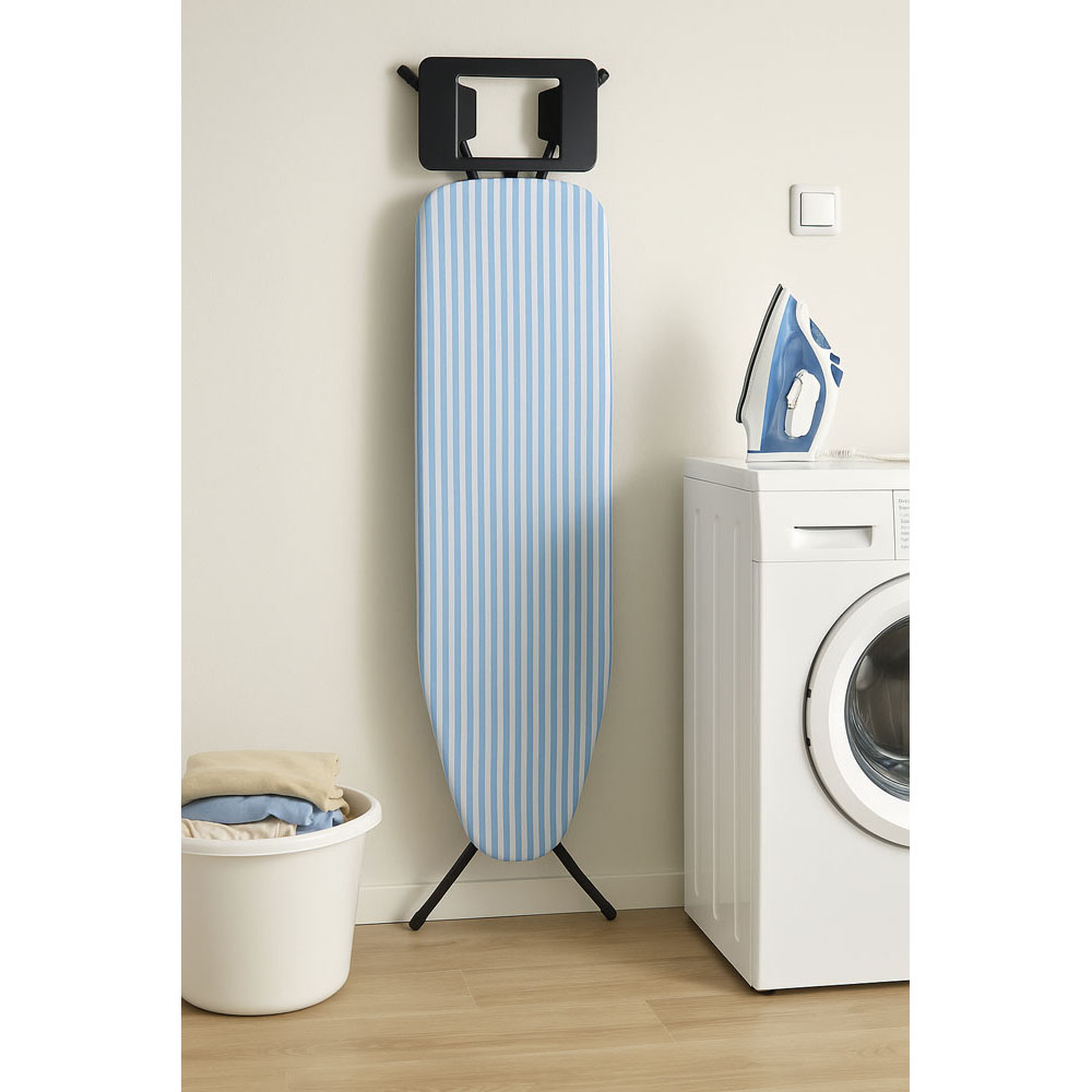 Σιδερώστρα με μεταλλικά μαύρα ματ πόδια,μεγάλη επιφάνεια σιδερώματος,ρύθμιση και ασφάλεια ύψους από 60 έως 88εκ.,θέση τοποθέτησης για το σίδερο και αντιολισθητικά ποδαράκια για μεγάλη ευστάθεια και σταθερότητα. Διαθέτει κάλυμμα 100% βαμβακερό.