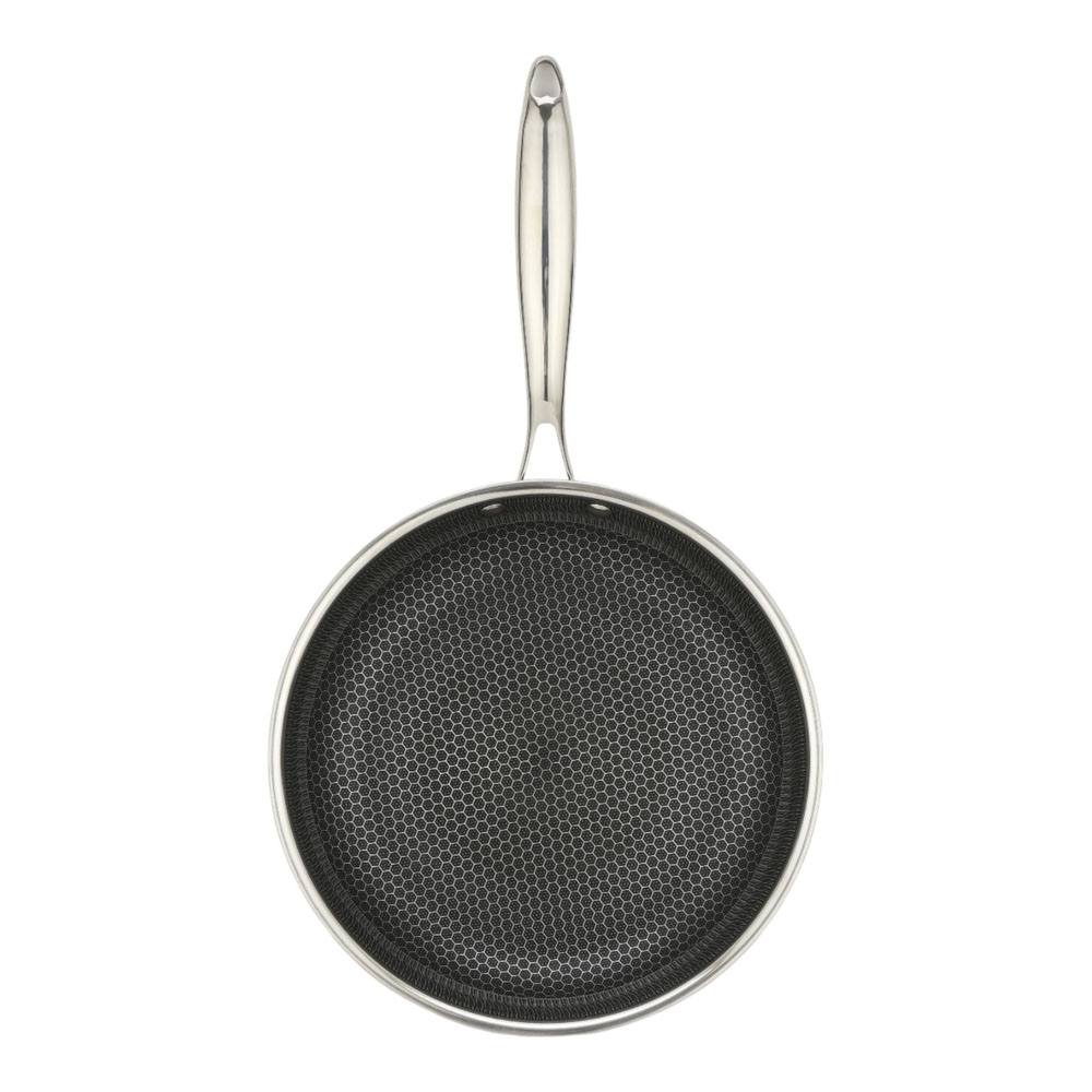 Τηγάνι από ανοξείδωτο ατσάλι 18/8 πάχους 2,5mm Dmond Tri-Ply τριών στρώσεων με αντικολλητική επίστρωση. Προσφέρει αντοχή στις γρατζουνιές, ομοιόμορφη κατανομή θερμότητας και υγιεινό μαγείρεμα. Κατάλληλο για όλες τις εστίες και για πλυντήριο πιάτων.