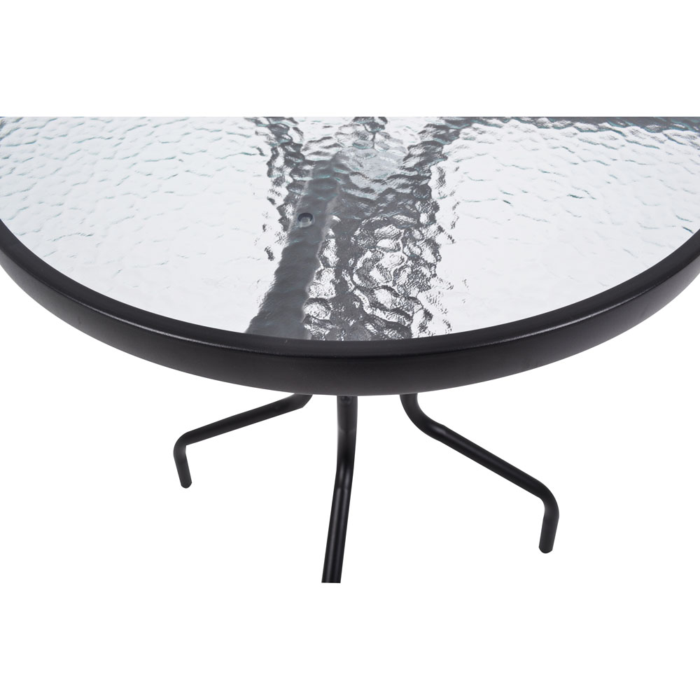 Τραπέζι κήπου με ανθρακί ματ μεταλλικό σκελετό και water wave γυάλινη επιφάνεια tempered 5mm. Διάσταση σωλήνα ποδιών 24Φx0,9mm.Υψηλής ποιότητας μεταλλικό τραπέζι εξωτερικού χώρου στιβαρής κατασκευής και κομψού σχεδιασμού.