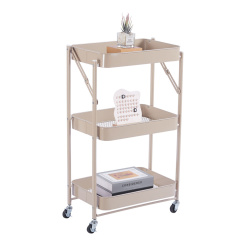 Τρόλεϊ αποθήκευσης αναδιπλούμενο με μεταλλικό σκελετό, ιδανικό για την οργάνωση της κουζίνας, του μπάνιου ή του γραφείου. Διαθέτει 3 πρακτικά καλάθια που προσφέρουν άνετο χώρο αποθήκευσης για διάφορα αντικείμενα, ενώ ο πτυσσόμενος σχεδιασμός του επιτρέπει εύκολη αναδίπλωση όταν δεν χρησιμοποιείται, εξοικονομώντας χώρο. Τα ροδάκια στη βάση εξασφαλίζουν ομαλή και εύκολη μετακίνηση, καθιστώντας το ιδιαίτερα λειτουργικό για καθημερινή χρήση.