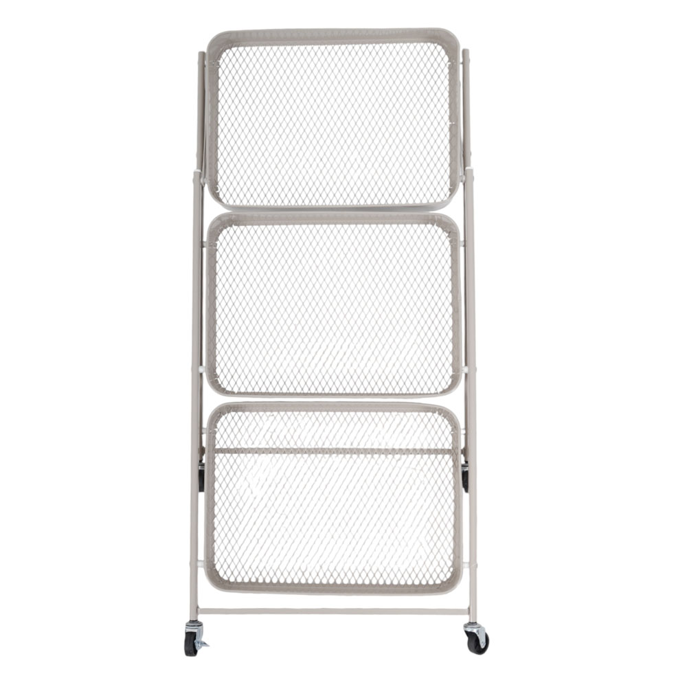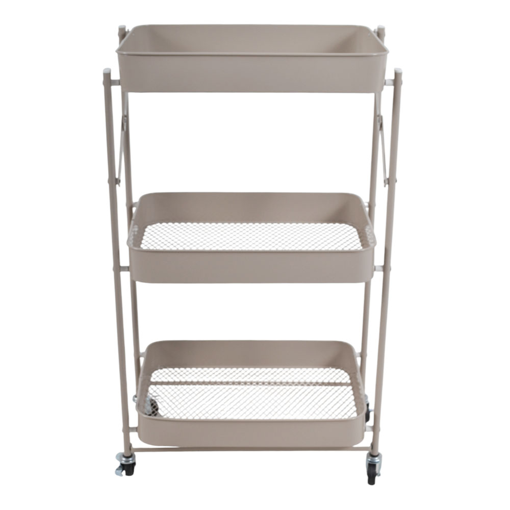 Τρόλεϊ αποθήκευσης αναδιπλούμενο με μεταλλικό σκελετό, ιδανικό για την οργάνωση της κουζίνας, του μπάνιου ή του γραφείου. Διαθέτει 3 πρακτικά καλάθια που προσφέρουν άνετο χώρο αποθήκευσης για διάφορα αντικείμενα, ενώ ο πτυσσόμενος σχεδιασμός του επιτρέπει εύκολη αναδίπλωση όταν δεν χρησιμοποιείται, εξοικονομώντας χώρο. Τα ροδάκια στη βάση εξασφαλίζουν ομαλή και εύκολη μετακίνηση, καθιστώντας το ιδιαίτερα λειτουργικό για καθημερινή χρήση.
